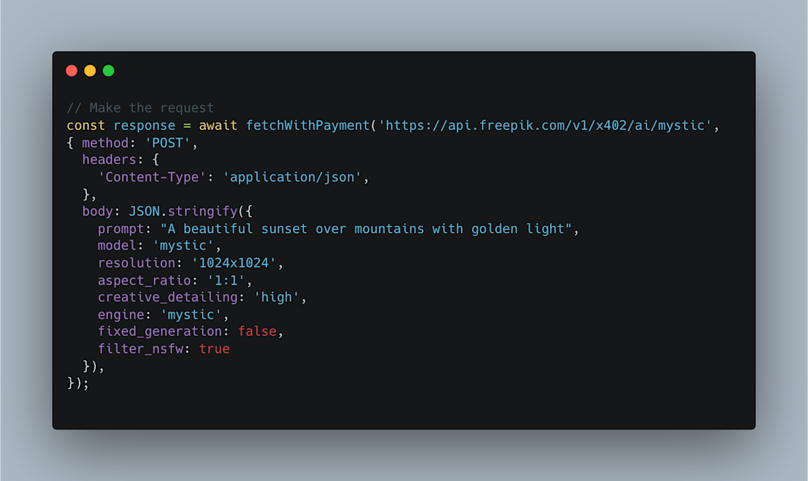 Freepik provides APIs that let developers access and generate creative assets — like images, icons, and AI-made visuals. With x402, their AI generation API now speaks payments natively at the protocol layer.